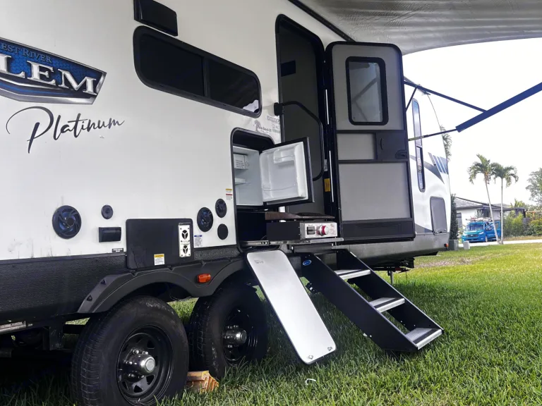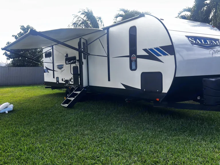Platinum Travel TrailerSpacious and comfortable 36-ft Forest River Salem Platinum travel trailer, perfect for family trips, couples, or extended stays. Features a roomy living area, full kitchen, bathroom with shower, and cozy sleeping spaces.Includes A/C and heat, plenty of storage, and upgraded Platinum trim finishes for a true home-away-from-home feel. Clean and well maintained.•2 bedrooms