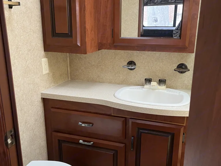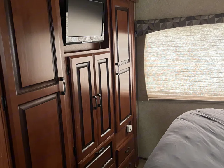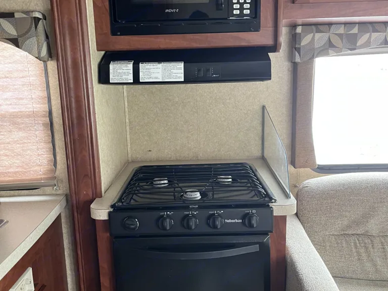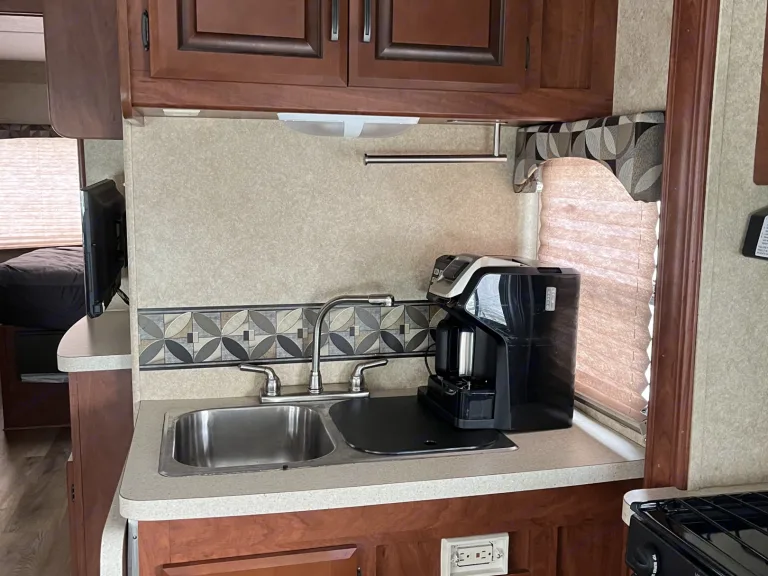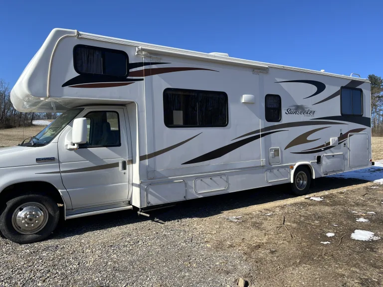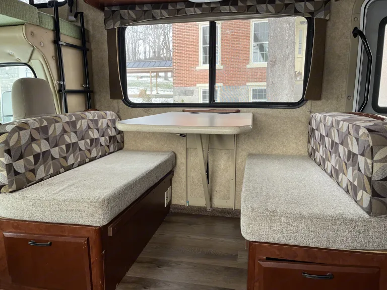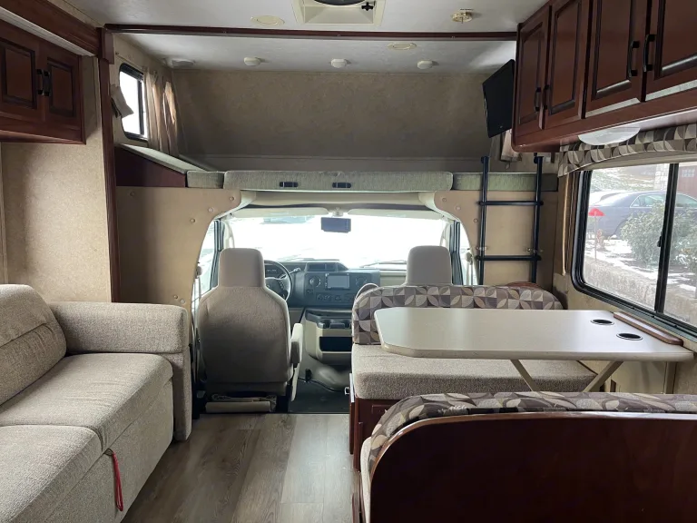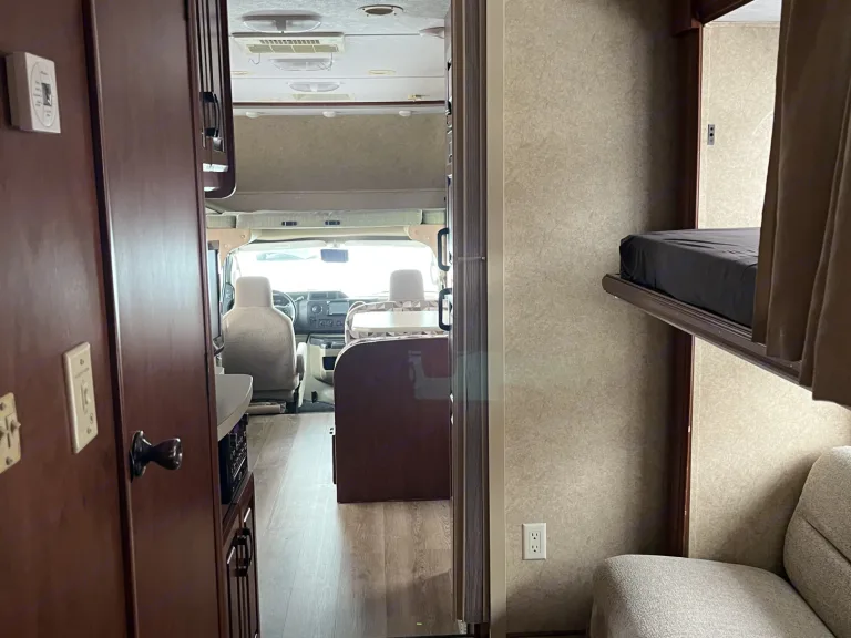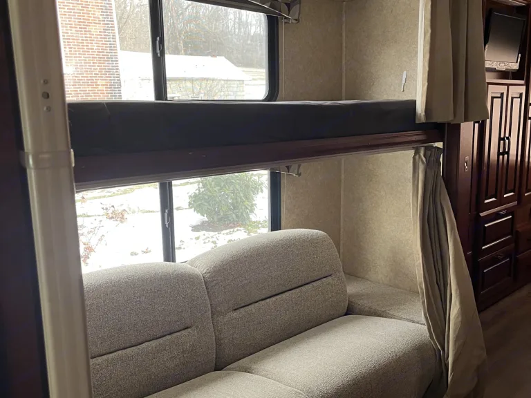 Great RV for the family. Sleeps 8-10. 1 queen bed in private bedroom, bunk above cab, fold down sofa and dinette, and 2 single bunks.