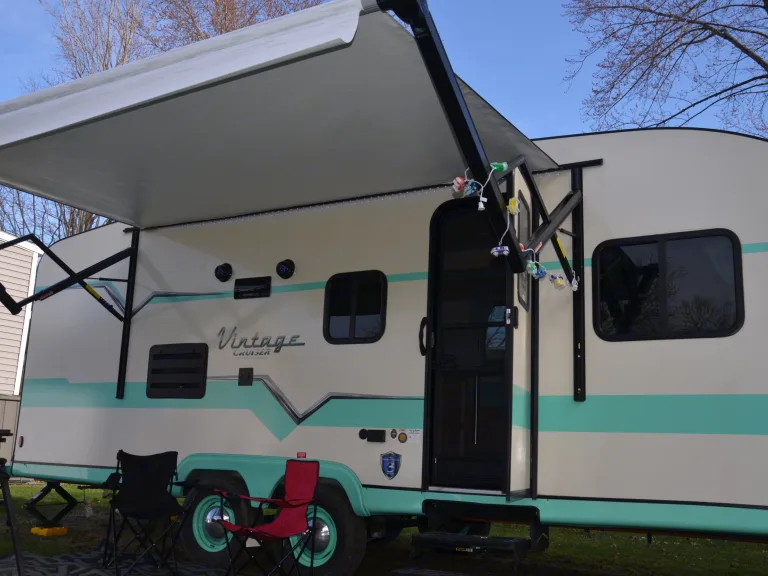 This camper is brand new and ready to go on adventures!  Go glamping in style while remembering the “good ole days.”  This camper is built to look like a camper straight out of the 1950’s while still having all the modern day amenities like AC, power awning and a microwave!  You can have everything that you have at home, all on wheels, able to go anywhere you can imagine.  Picture watching sunsets with your family in a throwback but modern camper!  Make your unforgettable memories happen today!Qué incluyeThis camper includes the basics that you will need from kitchenware to silverware.  It comes stocked with cleaning supplies for those “oopsies” spills that accidentally happen.  There are 2 twin bunks and a queen bed, the table also folds down for a total sleeping capacity of 6.  That’s HUGE for a camper of this size!  The master bedroom does have a curtain that closes for added privacy as well as the bunks.  It comes provided with camping chairs and even a marshmallow stick for making those delicious s’mores.RecomendacionesI recommend staying at the state parks in Vermont as they are small cozy sites that really get you out into the wilderness.  The state has dozens of them that allow campers to stay in.  There is a generator that can be included if you need to have a power hook up too.Otros detalles importantesThe camper does have a single battery that will probably last you around 6-8 hours before it starts to die off, unless plugged into an outlet.  There is also a walk around before drop off for first time campers to get a short lesson on how to use the systems in the camper as well.  Don’t worry it’s not difficult at all!