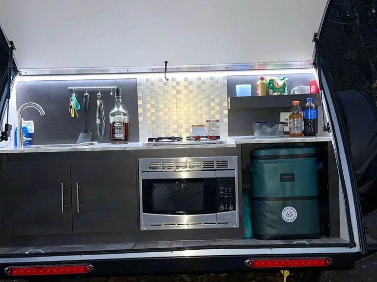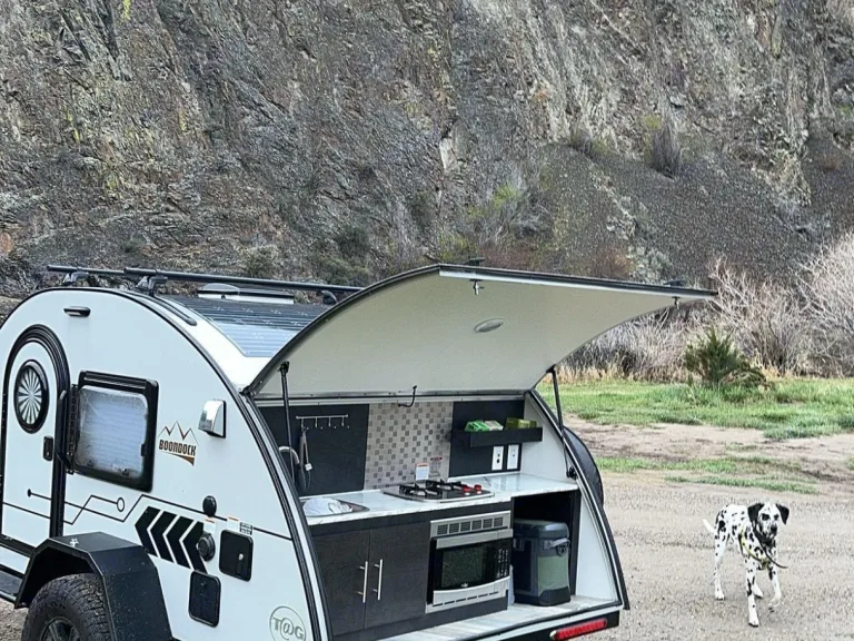 2023 Nucamp T@g XL travel trailer fully equipped with a queen size bed, tons of storage, heating , air conditioning, celling ventilation. The outdoor kitchen space includes sink, microwave ( must be pugged in) and outdoor shower. Qué incluye2 camp chairs included, fresh linens, pillows, additional blankets, basic kitchen utensils are included. Recomendacionesanywhere in Western Montana is incredible. I highly recommend Seeley and Holland Lake. Otros detalles importantesPets welcomed!