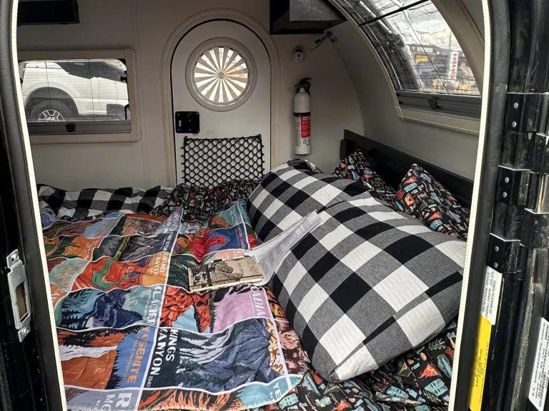 We loved how easy this little unit was to both pick up and tow, not to mention use! Megan provides an easy check list for hitching the unit up. The sleeper was comfy, fully loaded with bedding and pillows. We had no issues with outside sounds, slept like rocks after long days of hiking and exploring.