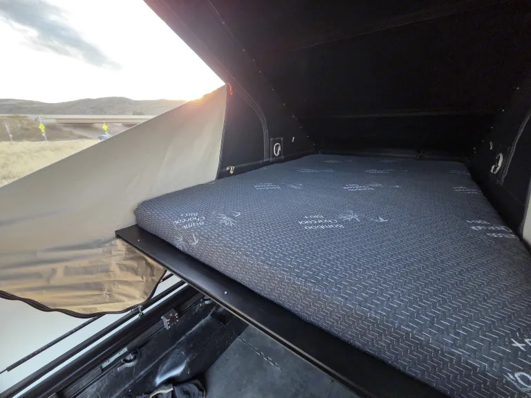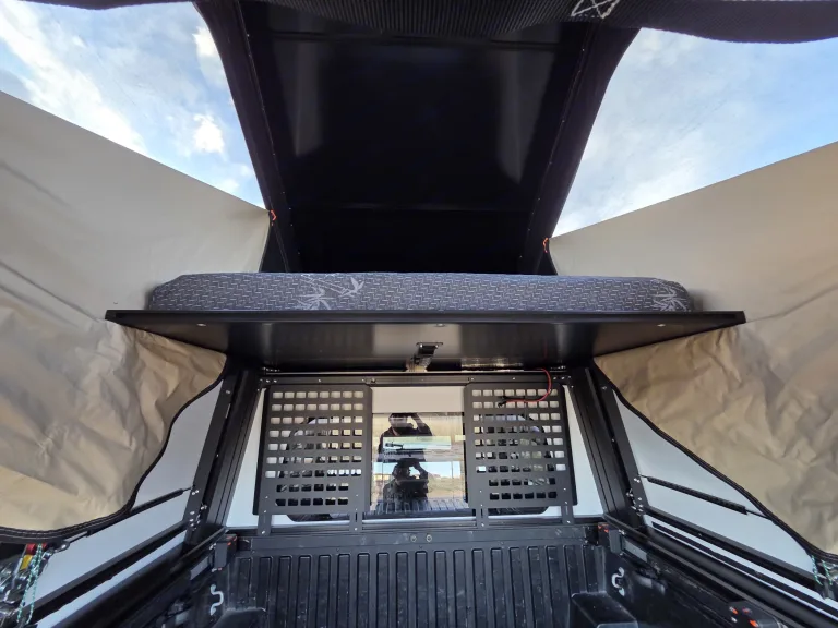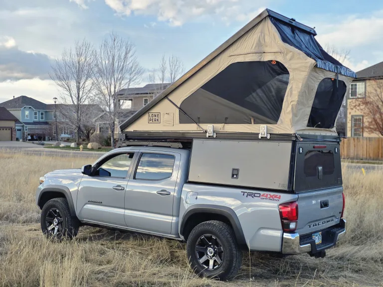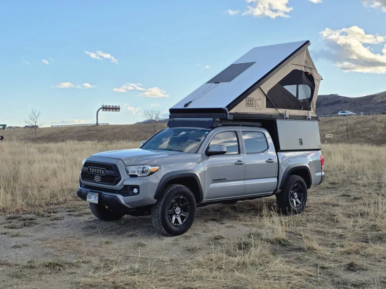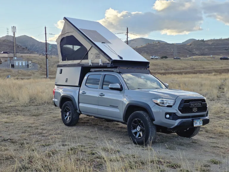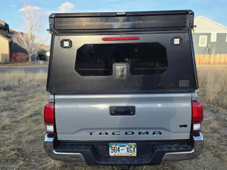 This 2018 Toyota Tacoma TRD OFF Road is equipped with 32in All Terrain Tires and can take you to some amazing dispersed camp sites . The Lone Peak Wedge Camper sets up in 30 seconds and provides over 33inches of Livable pass through space with the bed deployed , easily push the bed up to create over 60 inches of living spaceCamper is equipped with 200watts of solar on the roof to help keep the 100ah Lithium battery charged to run a 30qt Fridge , lighting , and optional Starlink Mini and Diesel heater optionsAdd the optional ski / snowboard and bike racks to complete your ultimate adventure Qué incluye• 30qt Fridge