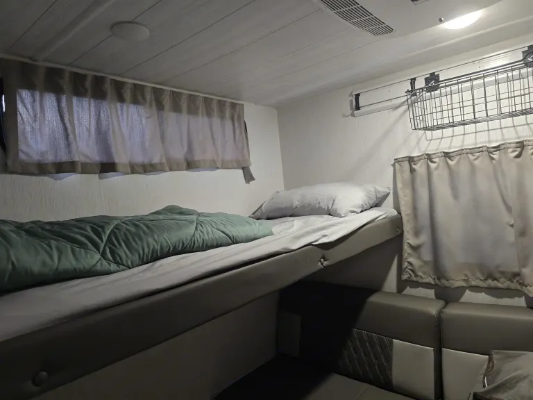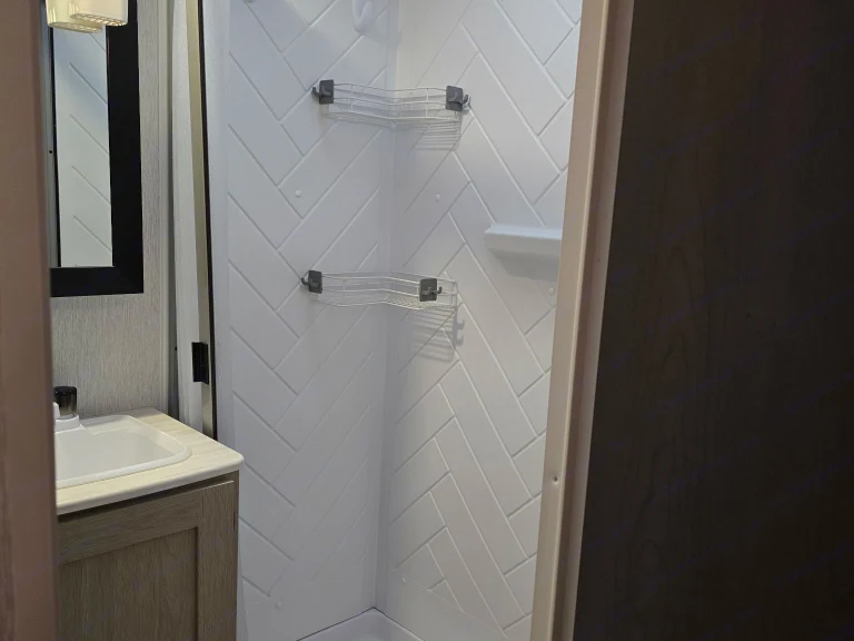 This travel trailer is a 28 ft travel trailer that has one slide. This beauty is very roomy. She comes fully equipped with everything you need. All you have to bring with you is clothes, food (paper goods), and personal hygiene items. Se will sleep up to 8 adults comfortably.Qué incluye• Pots and Pans