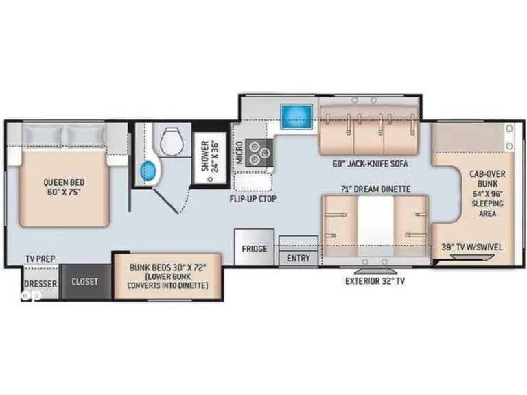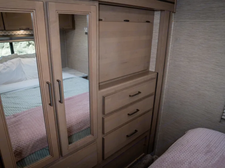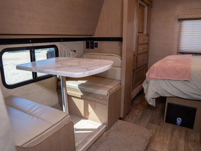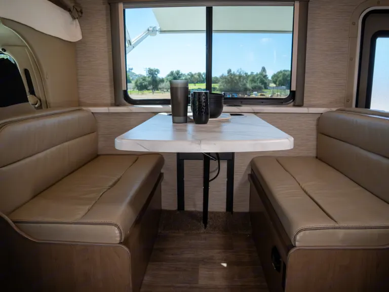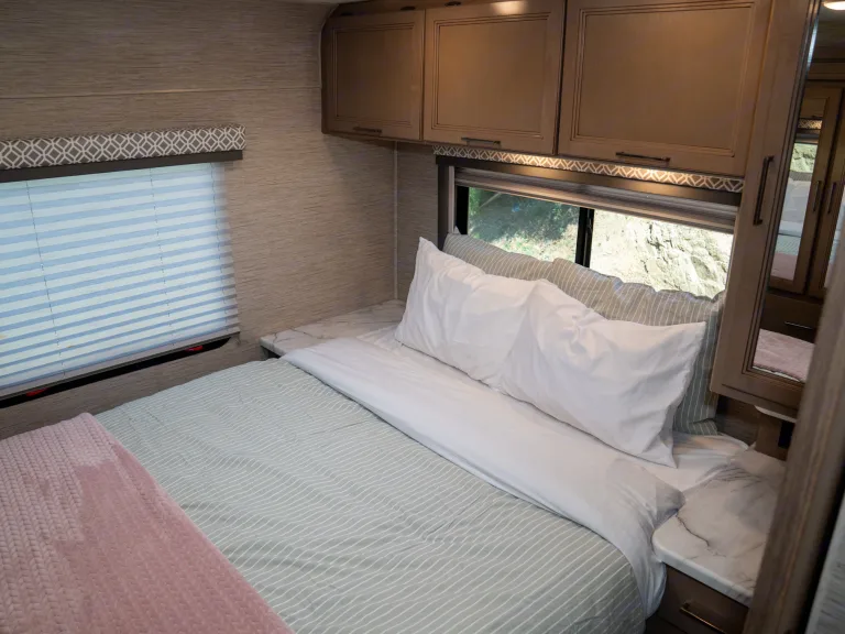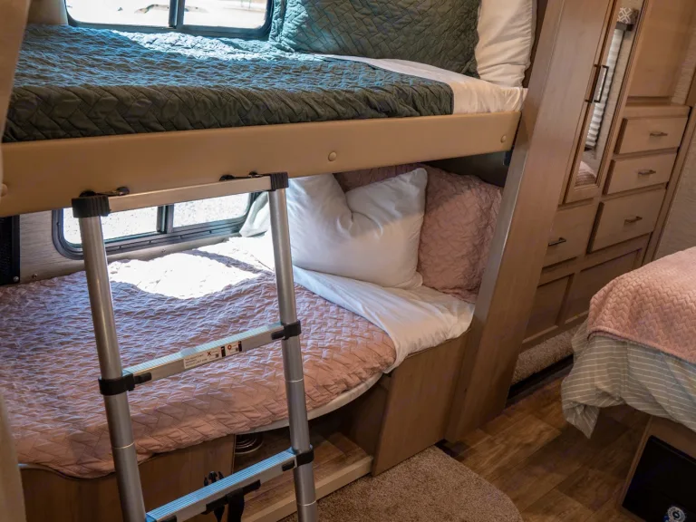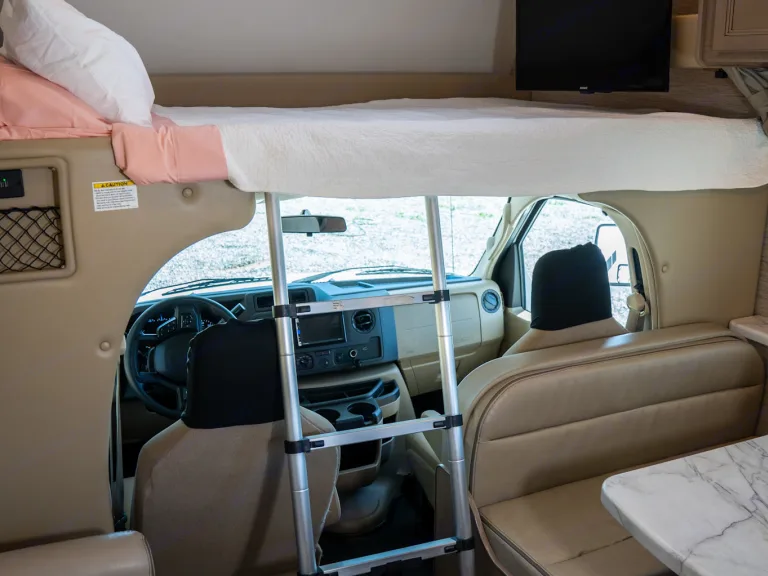 Meet "Betty". And yes, she's a total Betty! This gorgeous Class C Coleman is the epitome of luxury on wheels. This motorhome is classy enough for the fanciest of RV resorts yet rugged enough for any off grid adventure. Complete with solar you can enjoy a long battery life anywhere the sun shines.When you enter Betty's main door, you are greeted by the large L-shaped kitchen including a farmhouse sink, built in spice rack, 3 burner stove, oven, microwave, full sized fridge and freezer, lots of storage and all cooking, cleaning, and serving essentials. We even include a coffee maker, French press, and electric kettle. Basic seasonings, and a variety of teas are also included.Adjacent to the kitchen is the sofa which also converts to a full sized bed as well as a 4 seater dinette which also converts for additional sleeping. There are multiple cup holders to secure drinks while on or off the road and even a wireless phone charger built right into the dining table. Above the driving cab is an oversized full bunk complete with storage, TV, and more cup holders. The cab itself is spacious and well equipped with bluetooth integration ensuring a safe and comfortable drive to wherever you are headed.At the back of the coach is the primary bedroom with locking door for complete privacy. The bedroom is equipped with wardrobe closets, ample storage, and an extra thick queen sized bed.The center of the unit is the Perfect place for kids! There is a twin bunk above a 2 seater dinette with usb ports, iPad holders, pockets for books and electronics, and more! This is the perfect place for the kids to relax when they need some downtime during a busy day. In the evening, the kid's dinette easily converts to another twin sized bed perfect for additional sleeping. There are even nets to secure little ones from rolling off of either bunk.Last but not least is the luxurious bathroom. Complete with storage for everyone, spacious vanity, toilet, and shower you will truly feel right at home on the road.Betty loves adventure and loves to spoil her guests. She cannot wait to host your next vacation.Qué incluye• freshly cleaned and sanitized linens and towels