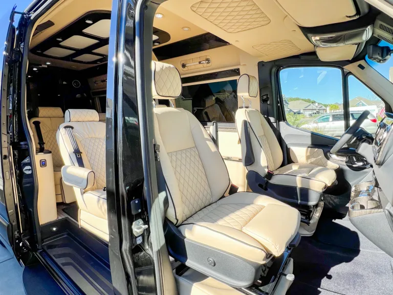 Elevate your ride with an unparalleled travel experience in our incredible 10-passenger Luxury Sprinter, where sophistication meets spaciousness. Perfect for family vacations, golf weekends, football games, corporate outings, dinner parties, weddings, concerts, airport transfers, or any special occasion where comfort is paramount. This van redefines the art of travel.