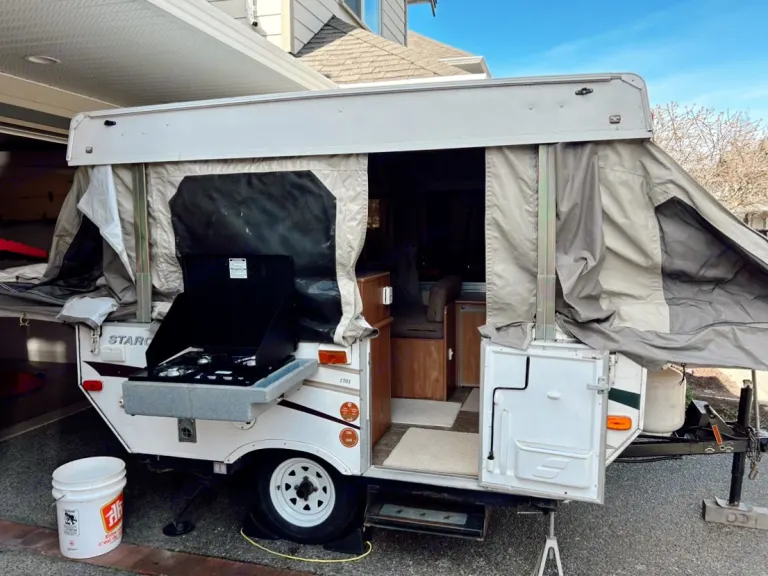 Meet Tony the Tent Trailer: Your Cozy Home on Wheels!**2006 StarCraft 1701 | Sleeps 4-6 | Lightweight & Towable**Tony is the perfect compact camper for families, couples, or solo adventurers. Easy to tow, quick to set up, and stocked with the basics — just hitch up and go! Bonus: kid and dog-friendly (max one dog pls!)Tony’s the perfect base for unplugging, exploring, and making memories. Book your VI getaway.