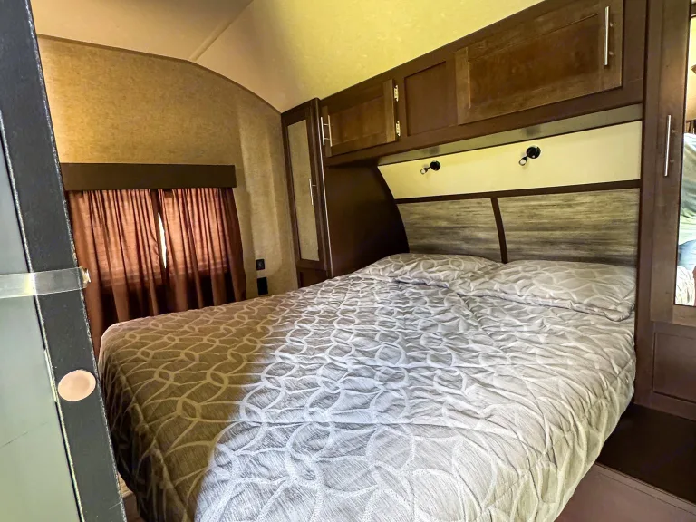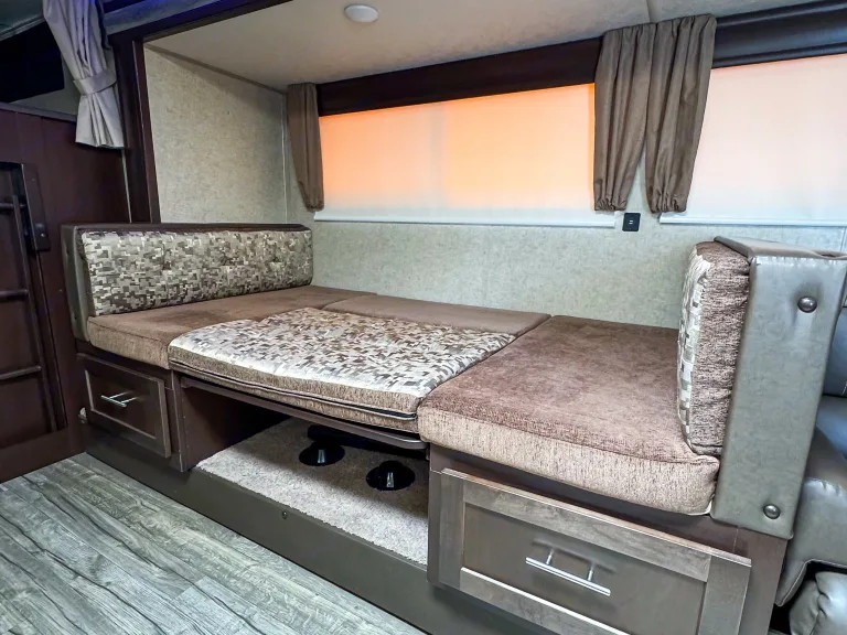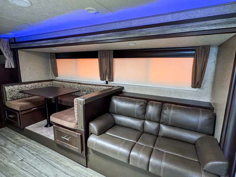-Master bedroom with queen bed, dinette turns into a bed, couch turns into a bed.
