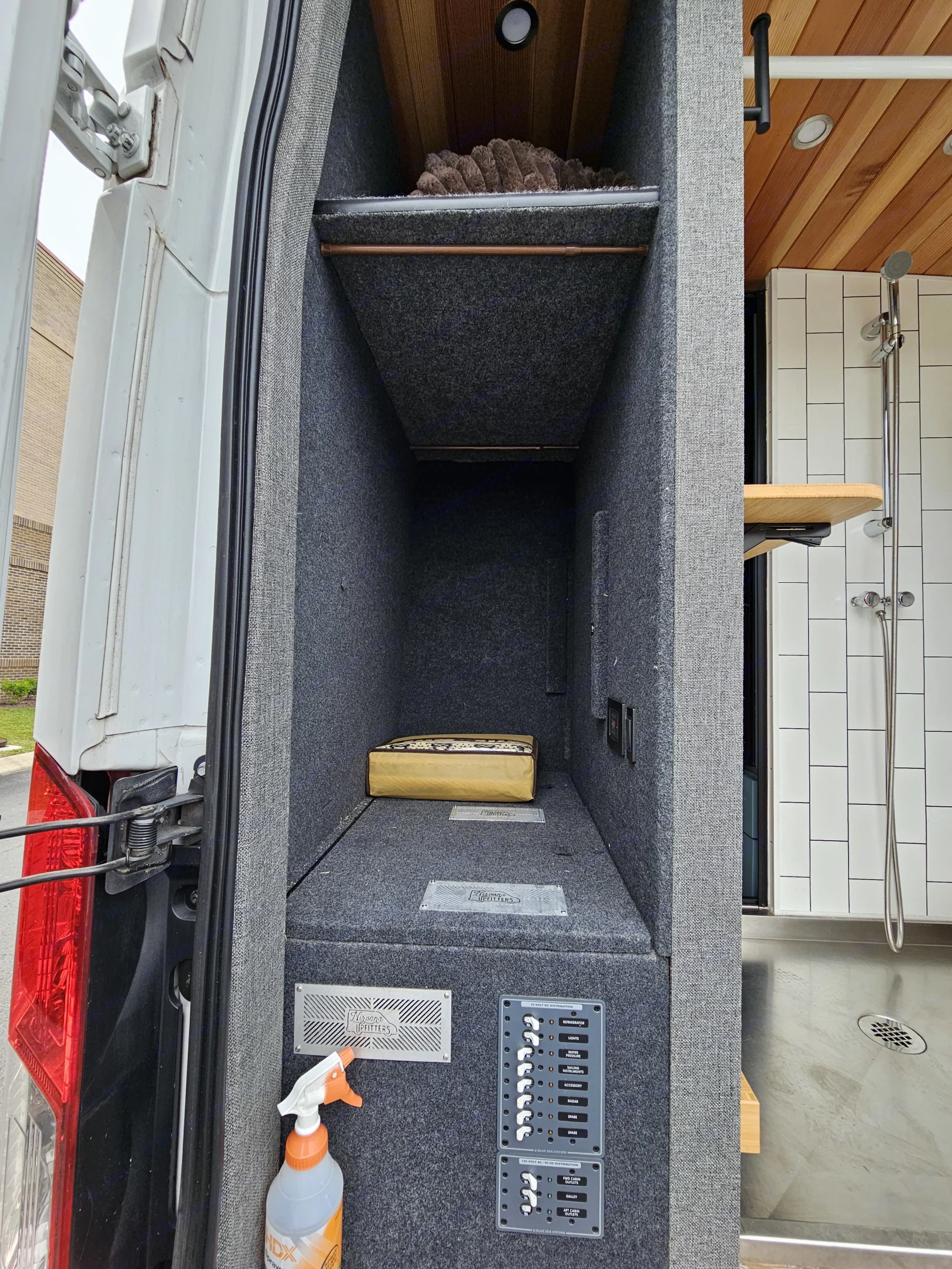 3The van was lovely and well equipped for a trip. The biggest issue was that there wasn’t an easy way to access the upstairs, main, bed. (the TV blocked the opening and there was no ladder or step to get up). I ended up having to sleep in the downstairs “bed” with my daughter on uncomfortable pillows that spread apart while I tried to sleep. We also didn’t find the bathroom particularly useful other than storage, and I wouldn’t have used the toilet at all if we were off grid.