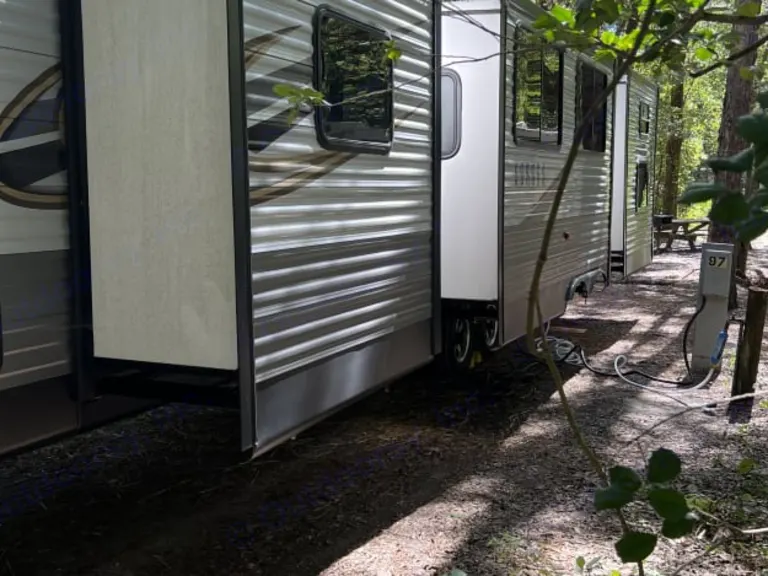 Get outdoors! With Rolling Hill's Rv Rental.Hello all, and thank you for looking at our camper!We have a great time going out camping with our family. From state parks to the fancy hookups at Disney. Since we can't use the RV every weekend, we would love for you to get to have all the experiences we are fortunate to have.Our camper is big! And it has all the features your family needs. 3 slide outs which provide plenty of room. Easily sleeps 8 adults comfortably. There is a separate bunkhouse for the kids in the back with 3 beds. All beds have lights and usb ports for charging electronics. The living area has a dinette (that can also turn into a bed), couch (that turns into a bed), fire place that can put out real heat, TV, DVD player, am/fm/Bluetooth radio that can be played inside, outside, or both. The kitchen has a fridge, 3 burner stove top, oven, microwave, and large pantry. The bathroom is spacious for an RV and has a stand up shower. The master bedroom has its own slide that provides a queen sized bed with a pillow top, a closet and room to be able to walk around and even more storage. The master bedroom can be cooled by the main ac, as well as its own roof mount ac. Moving to the outside a large electrically controlled awning, exterior led lighting. Towards the back of the camper is a grill as well as a kitchen, complete with a second fridge, a sink and more storage and grilling utensils.All of our campers include the following -