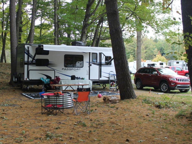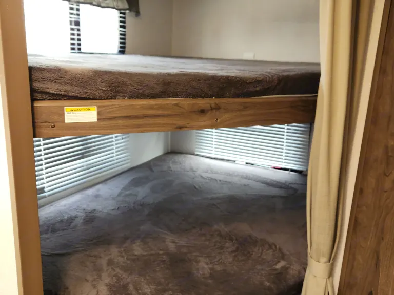Beautiful camper like new is ready to take your family on a weekend adventure or a longer family vacation! This Ultra Lite Passport has a full kitchen inside, and an outdoor kitchen for extra convenience. Sleep comfortably with heat or a/c depending on the season. The generous sized bunks, sleeper table and queen murphy bed make it easy to sleep 6 - 8 people (depending on their sizes). With a full bathroom, no night trips across the dark campground to the public facilities. There is plenty of secure indoor and outdoor storage for extra gear, outdoor games, and anything else you might want to bring along. Qué incluyeLinens for the queen bed will be provided. Kitchen is stocked with some basic items including can opener, silicone spatulas, scissors.