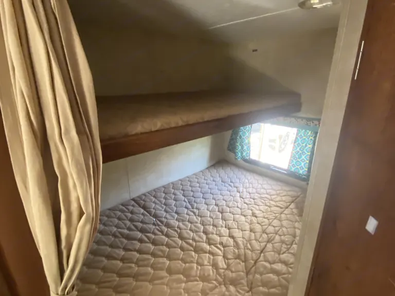Oh the places you'll go! Our little camper has been on some incredible adventures and seen some beautiful places, and we can't wait to take you and your family there! Whether you're sitting around the campfire, hiking through the woods, mountain biking or rock climbing, this keystone hideout makes for the perfect home base for any adventure you come up with. When you're not outside doing what you love, you'll be getting comfortable on one of our cozy beds, watching TV, listening to the radio, or cooking up something delicious for dinner after a long day outside. Our country has some of the most beautiful places you could ever see, and we want to get you out there and exploring them today! Book us now for your family's next big adventure!Qué incluye• Basic Cooking Supplies (pots, pans, dishes, utensils)
