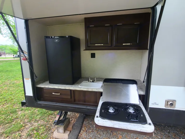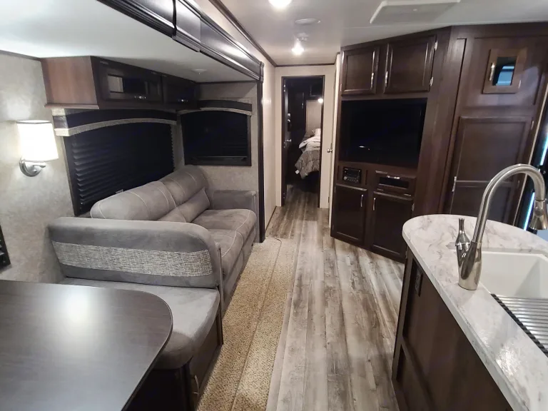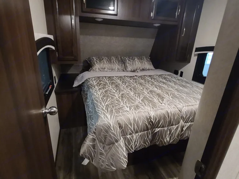 This spacious camper with high end furnishings will bet the setting of some great memories! The large bedrooms, and living space will be ideal if your weather is less than desirable. The large awning and outside kitchen are fun perks to enjoy an outside living space while on your adventure. It is time for you to settle, relax, and unwind!Qué incluyeTwo kitchen towelsFour dish clothsThree pots w/ lidsOne skilletOne colanderOne large mixing bowlsToasterThree steak knivesOne cutting boardOne kitchen shearsTwo slotted spoonsOne spatulaOne can opener10 plates10 cereal bowls10 cupsSilverware / knivesThree mixing spoonsMiscellaneous cooking utensilsTrash can - bags not providedCleaning suppliesWaffle IronCoffee Pot (coffee filters not provided)TVDVD PlayerStereoFire ExtinguisherToilet Paper (special RV paper)Indoor/ Outdoor carpetTwo roasting sticksTabletop Charcoal grill **Lighter fluid and charcoal not providedRecomendacionesIowa is a beautiful state to travel around! So, pick a close location and enjoy a stay-cation! Camp at Lake Red Rock near the beautiful and charming Pella and we will deliver and setup your camper for you! You just show up and have all the fun!Otros detalles importantesThis camper is not pet friendly -- no exception.