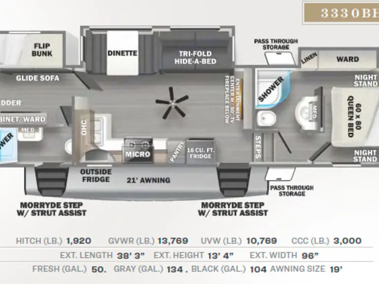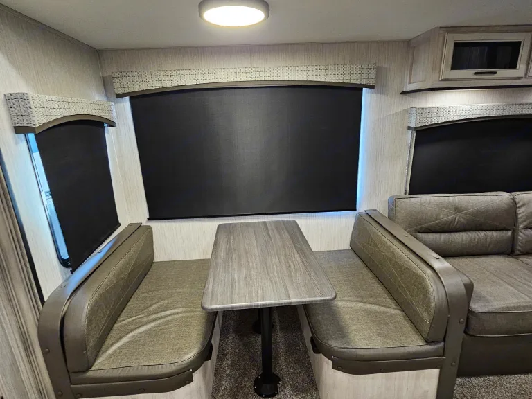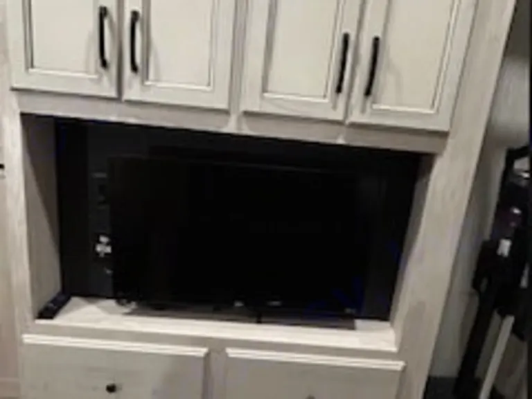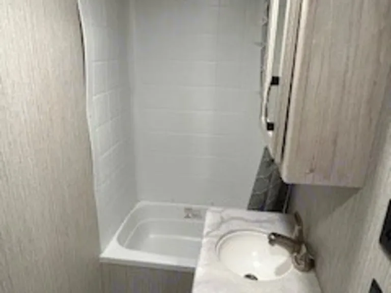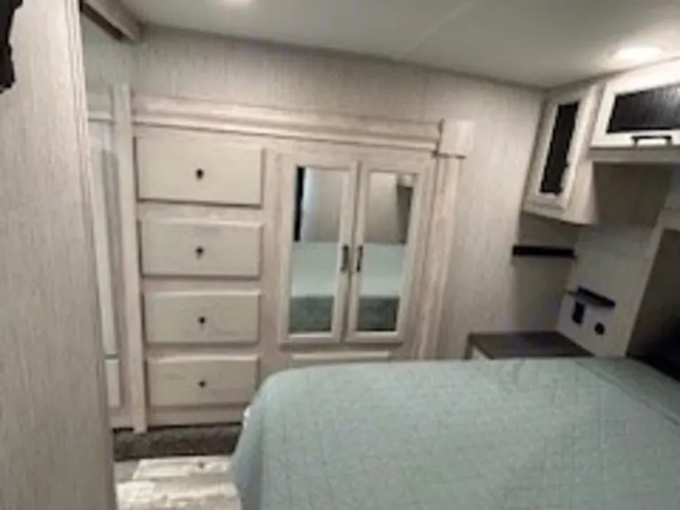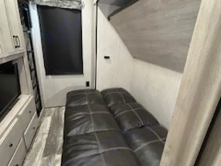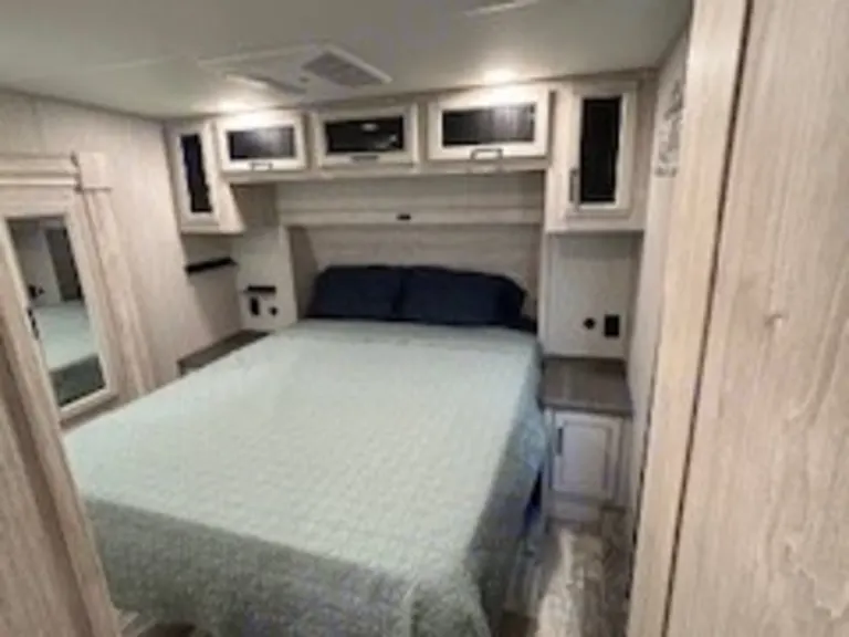 Relaxing Family Size 5th Wheel Camper with versatile spaces. 2 Full bedrooms with 2 Full baths, a Full kitchen with a Full Sized Refrigerator & Freezer. Propane Grill attached. Perfect for short and long term stays.