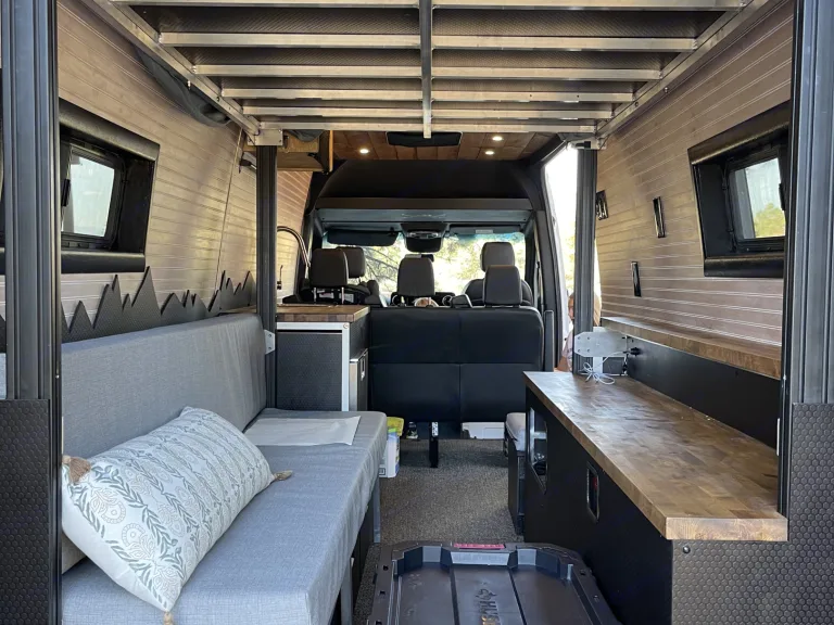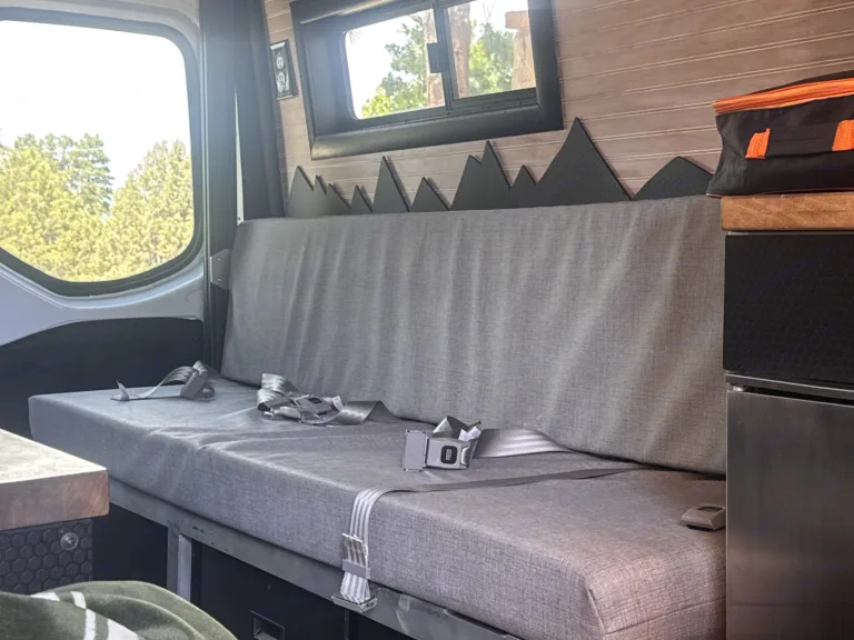 Spacious Sprinter Adventure Van | Seats 9, Sleeps 5+Toddler | Family FriendlyReady to explore the great outdoors with your family or group of friends? This custom Sprinter camper van is your go-anywhere home on wheels — ideal for weekend getaways or week-long family adventures. Whether you're boondocking in the mountains or parked at a full-hookup campground, this van has everything you need.Sleeps 5 + a ToddlerQueen bed in ceiling lowers easily with 2 people — cozy enough for parents + toddlerLarge Bench seat pulls out quickly to make an XL Twin under the Queen bed.Luno mattress fills the front cab to sleep an adult or child 5'8 or shorter. (Our daughter who is 5'10 sleeps there comfortably slightly curled up.)Back seat mattress turns the three seat row into a full bed.Possible small child option is a blow up mattress in the floor under the queen and leave the bench seat as is for another child to have it sleep more kids. (How we use it for our 11 and 4 yr old kids.)Privacy curtain and portable Trellino toilet for stress-free toilet time and no dump stations.Seats 9 with SeatbeltsGreat for families.