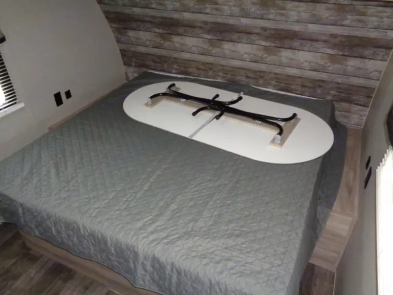 The ultimate getaway camper as you can put the queen bunk and couch up to make a relaxing party deck with the toy hauler. Don’t worry it has a fencing to keep the kiddos in and the bugs out. Come give it a whirl I promise it will make you buy your own.Qué incluyelinens for all beds, pillows, kitchen utensils, outdoor table, coffee pot. Delivery, set up, and break down within reasonable distance.RecomendacionesExcellent for beach trips, Talladega Race Weekend, or any where your heart desires.Otros detalles importantesNo smoking!