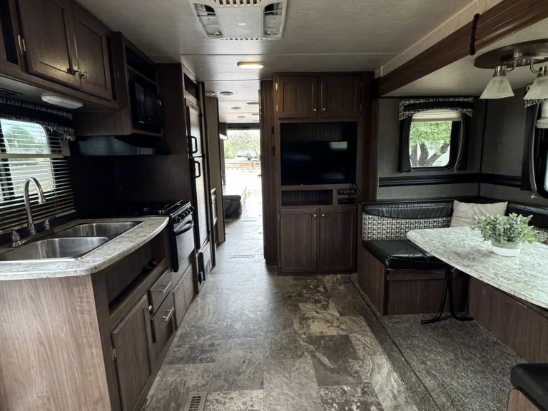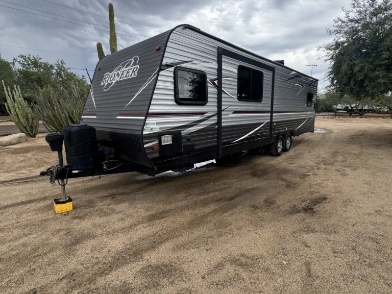 Pioneer RG28 Toy Hauler – Adventure-Ready Comfort for Any GetawayBring your toys and your crew — the Pioneer RG28 Toy Hauler is built for adventure without sacrificing comfort. With a spacious garage area, flexible sleeping arrangements, and all the amenities of home, this trailer is perfect for family trips, desert rides, or weekend escapes.What We LoveThe RG28 combines practicality and fun — roomy enough to haul your favorite toys yet cozy enough for families or couples who just want extra space. Whether you’re camping lakeside or setting up at a race event, the rear ramp door doubles as a patio deck for relaxing evenings under the stars.Perfect ForATV & dirt bike weekendsFamily camping tripsLong-term stays or remote work getaways