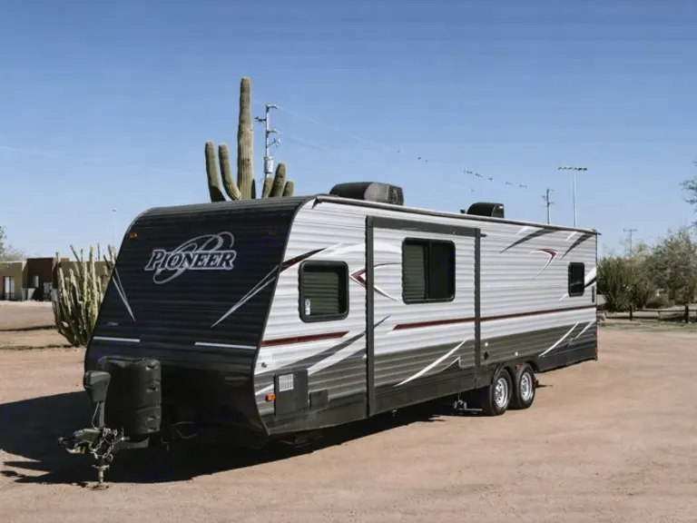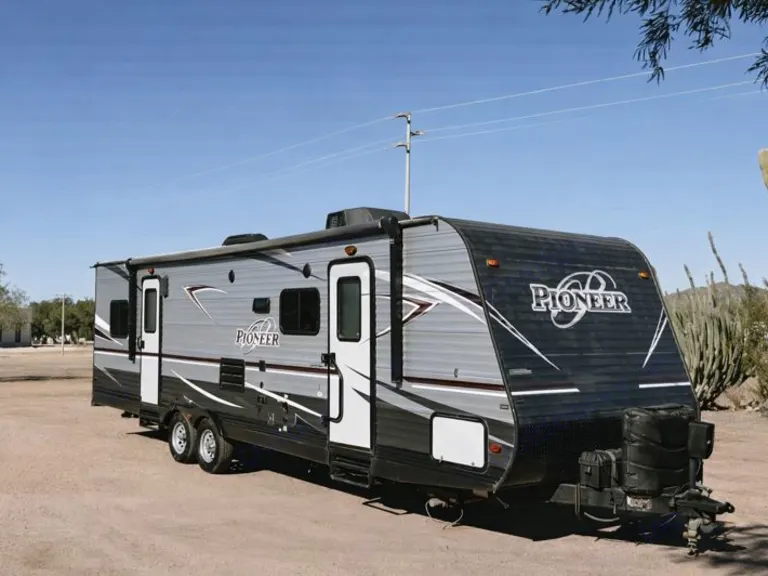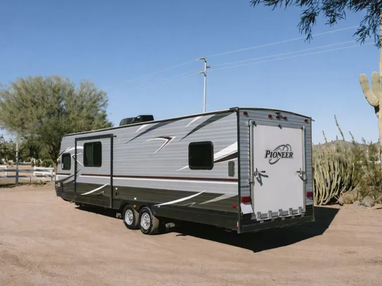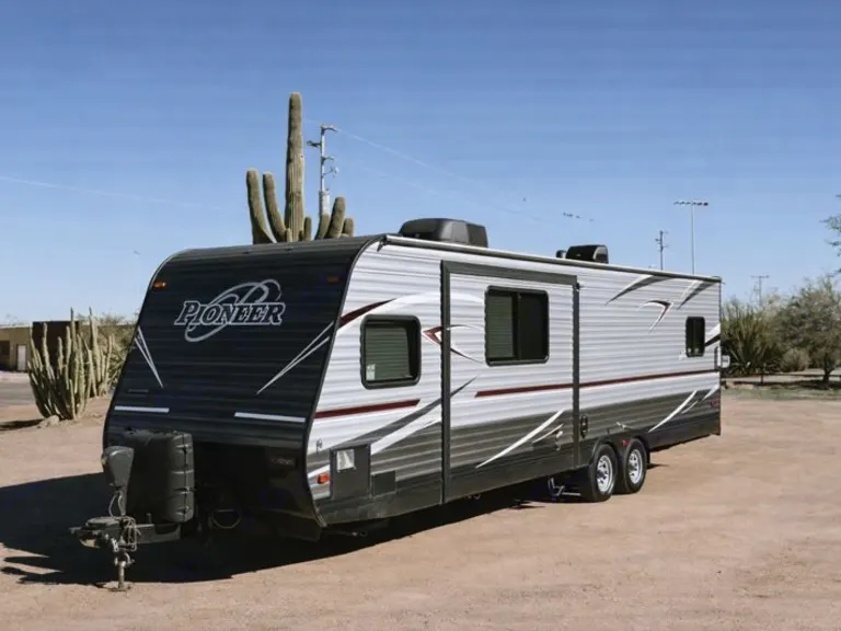 Pioneer RG28 Toy Hauler – Adventure-Ready Comfort for Any GetawayBring your toys and your crew — the Pioneer RG28 Toy Hauler is built for adventure without sacrificing comfort. With a spacious garage area, flexible sleeping arrangements, and all the amenities of home, this trailer is perfect for family trips, desert rides, or weekend escapes.What We LoveThe RG28 combines practicality and fun — roomy enough to haul your favorite toys yet cozy enough for families or couples who just want extra space. Whether you’re camping lakeside or setting up at a race event, the rear ramp door doubles as a patio deck for relaxing evenings under the stars.Perfect ForATV & dirt bike weekendsFamily camping tripsLong-term stays or remote work getaways