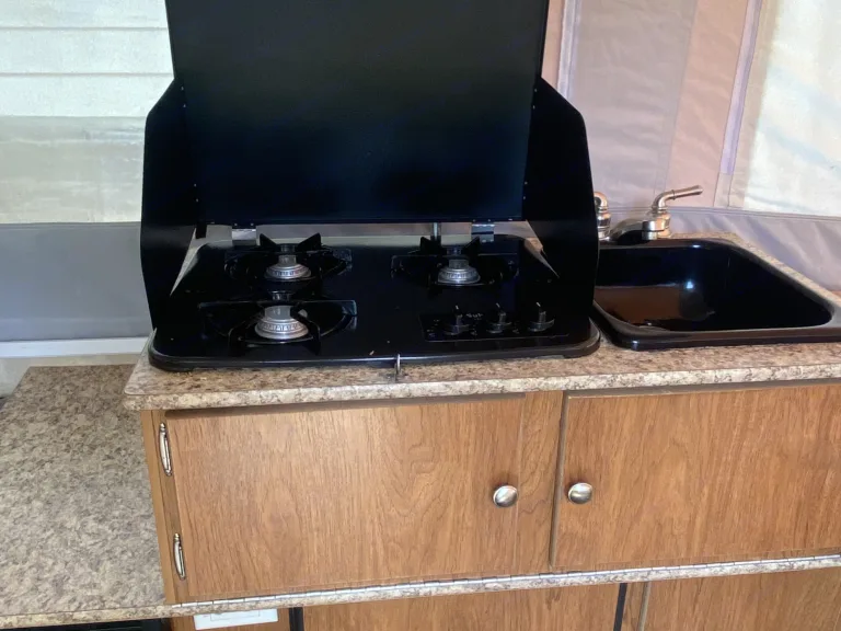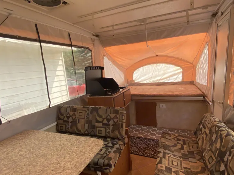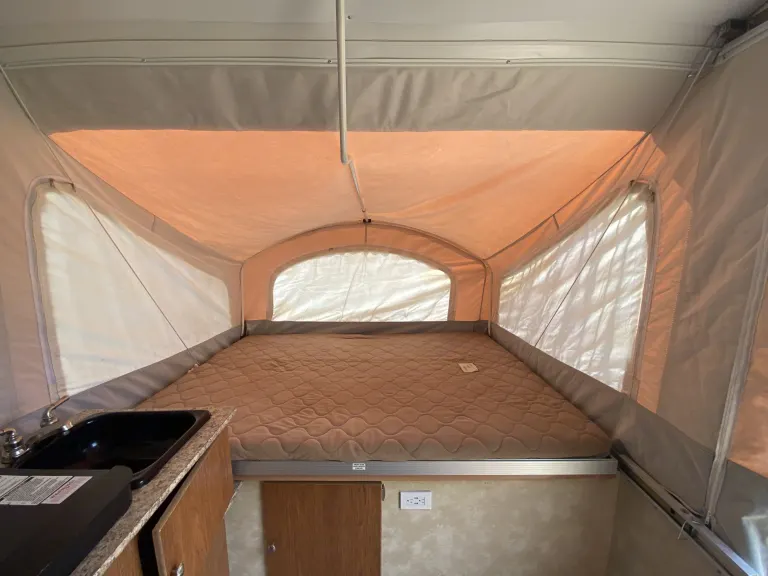 Rent our super clean and well-maintained 21 ft pop-up camper (12 ft box) — smoke-free and always stored indoors!Sleeps 5-7people: