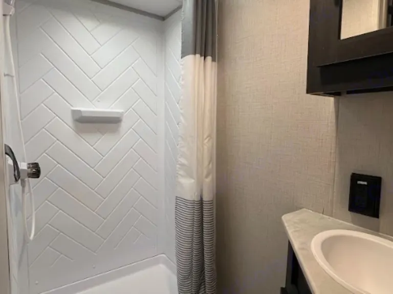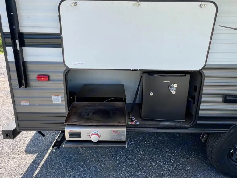 Family-Friendly Sleeping for Up to 7Queen-size Murphy bed folds down over a plush sofa for flexible spaceDouble bunk beds perfect for kids or guestsConvertible U-shaped dinette adds extra sleeping roomIncludes fresh linens, pillows, and bedding for all bedsFully Stocked KitchenInside kitchen with two-burner stove, microwave, large refrigerator, and deep sinkAll the essentials: pots, pans, cooking tools, and dining utensils includedPlenty of cabinet storage for your groceries and snacksSpacious Rear BathroomFull bathroom with a shower, toilet, sink, and medicine cabinetTowels and toiletries provided for your convenienceComfort in Any Season13,500 BTU A/C and powerful 20,000 BTU furnaceTankless hot water heater delivers endless hot waterEnclosed underbelly for added insulation on chilly nightsEntertainment & Outdoor SetupSmart TV and Bluetooth stereo for movies and musicPower awning with LED lights—perfect for evening hangoutsComes with an outdoor rug and camping chairs for easy setup and relaxationCompact, Easy to Tow & Set UpLightweight at just 4,049 lbs dry weight—half-ton truck friendlySingle slide-out expands the interior for more room to stretch outEquipped with manual stabilizer jacks for a quick, stable setupWhat’s IncludedFresh linens, pillows, and beddingFull kitchenware: pots, pans, utensilsTowels for your stayOutdoor chairs and rugLeveling blocks, hoses, and everything you need to camp with easeJust pack your clothes, food, and sense of adventure—we’ve taken care of the rest!
