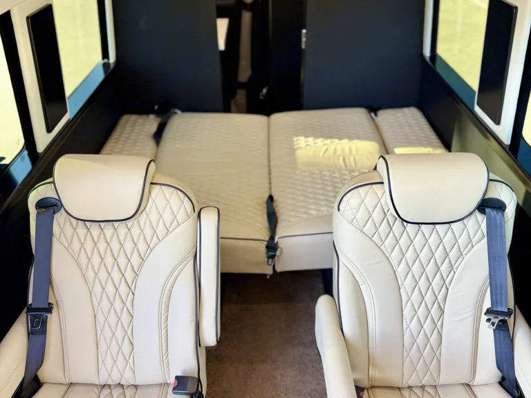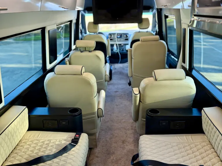 This new Mercedes built under sprinter chassis Ext 3500 with all the bells and whistles. If your looking for a night out to impress friends and client or taking the family on a trip across America, this is the rig for you with a 10 seat belts.