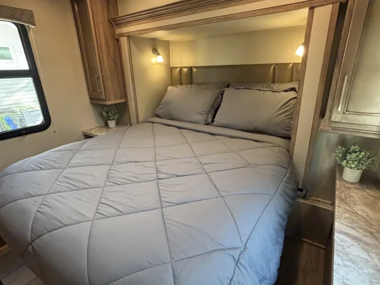 • Spacious Comfort: Sleeps up to 8 with a private master bedroom, overhead bunk, convertible dinette, and sofa bed. Has 2 pop outs. One for the living room and one for the master bedroom— perfect for family or group travel.