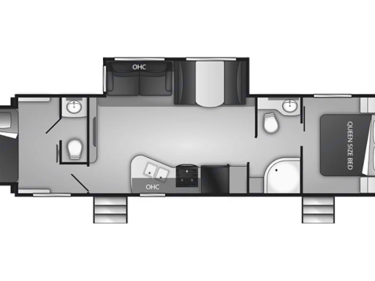 This Travel Trailer is the ultimate set-up. 2 private bedrooms and 2 Toilets!There are 2 slides that open up the space in the main room and the rear bedroom, making this way bigger than most units of this size.Front Bedroom has a queen bed and a ton of storage. The front bathroom off this room has a shower, toilet, vanity and a full storage cabinet.Rear Bedroom has a twin bed and a second bathroom. This bathroom has a toilet and vanity. Additional under bed storage is quite spacious.The main cabin area has a full kitchen, Stove/oven, microwave, Fridge/Freezer, sink and pantry. The open layout also has a dining table and sofa that both convert into a full size beds.The Entertainment center has a 32" TV, DVD Player, Antenna, and Radio that has speakers inside and out. You can select to play both area, or just one. Download your playlists and hook up to the Bluetooth to kick those tunes.Outside there is a power awning and led lighting. and an optional 22" portable griddle that hooks into the propane system.Generator includes 6 hours of use per day, $3 per hour for extra time.Qué incluyeWe will have the correct toilet paper onboard, assortment of blocks for leveling and everything to connect water, electric and sewer/dump.Renters must provide linens and pillows.4 camp chairs, camping table, prep table, cookware and utensils included.Delivery and Set-up can be arranged up to 100 miles for an additional fee.RecomendacionesThere are endless possibilities locally to plan for this unit. From Designated Campgrounds to Dispersed we are very fortunate to have so many options.Reserve USA, KOA, AZ Forrest Service are some good places to look for some good organized locations.Otros detalles importantesWell mannered pets are welcome!No Smoking.