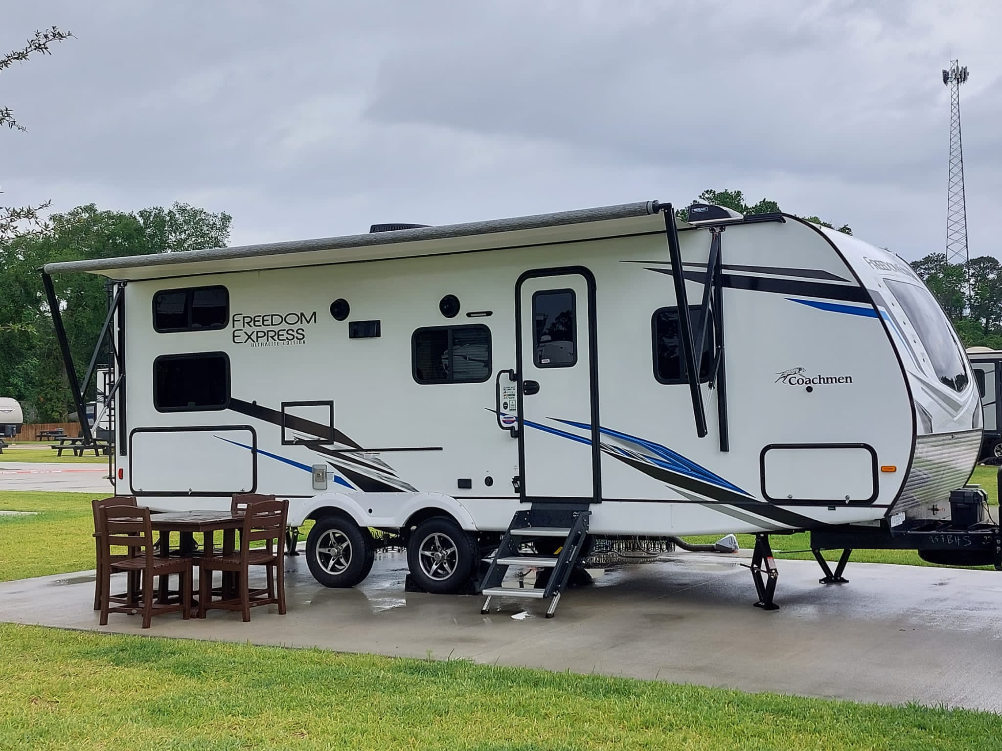 Suites 2 GO offers a cozy and comfortable RV rental suite ready to be taken to the destination of your choice!Say hello to “The Suite Spot”. Manufactured by Coachmen - one of the most reliable and trusted RV brands, “The Suite Spot” is a model 2022 Freedom Express Ultra Lite 257BHS travel trailer. This RV is the perfect size measuring with a length of 28ft. It is an under 30ft lightweight travel trailer that sleeps 8 and has a private master bedroom. It offers a great combination of style, comfort, and convenience.Below are some of the awesome features of “The Suite Spot”:1. Size and Dimensions: 28ft, lightweight but strong, aluminum construction, living area slide out, spacious floor plan2. Sleeping Capacity (8 people): queen-sized bed in the master bedroom, two double size bunk beds in the rear, and a u-shaped dinette that converts into a bed3. Kitchen: refrigerator, microwave, oven, three burner stove, extended countertop space4. Comfort and Convenience: TV that flips to either living space or master bedroom, stereo system, ducted air conditioning and heating, LED Lighting, bathroom with shower, sink, and toilet. Outdoor kitchen with sink, mini fridge, and griddle cook top. Outdoor shower.5. Amenities: Hand vacuum, broom, hand soap, and toilet paper. Any additional requests don’t hesitate to ask – we will try our best to accommodate you.*Kitchen Items AND Linens NOT Included*Delivery/Pick UP Options:- “The Suite Spot” is available to be delivered at a destination of your choice in the greater Houston area. You can choose from any of the wonderful RV resorts or campgrounds that can be found.- Guests who have experience towing and have a suitable vehicle are also welcome to take “The Suite Spot” to the preferred destination of their choice. Travel trailer comes with a weight distribution and anti-sway hitch.Towing Information & Requirements1. Minimum 8,000 LBS TOW Capacity2. NO Lifted OR Lowered Vehicle Will BE Allowed TO TOW THE Travel Trailer3. TOW Vehicle Should BE Equipped With AN Electronic Brake Controller (Available TO Rent AT A Small FEE IF YOU DO NOT Have ONE)
