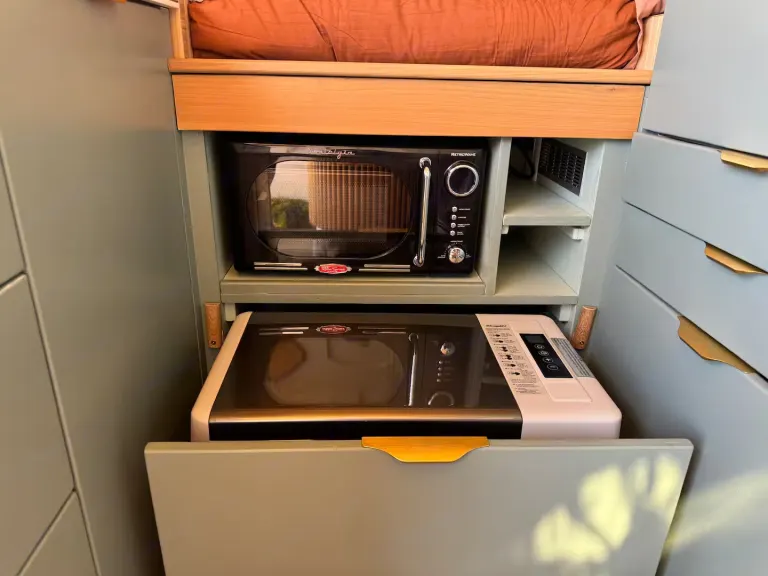 Whether you’re chasing sunsets, taking a romantic weekend away, or simply craving a peaceful escape, Cocon Van Life is ready to wrap you in warmth, beauty, and a touch of adventure.The van also features 440 Watt solar panels and 400 Amps of Lithium batteries with a 2,000 Watt inverter with shore power connection. Type C, USB outlets for charging