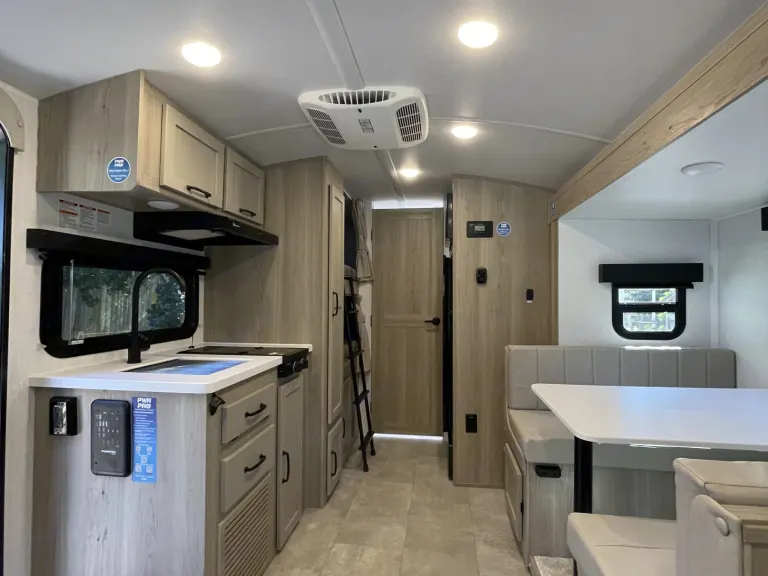 Adventure-ready and family-friendly! Rent this 2025 Rockwood Geo Pro 20BHS — a lightweight, modern travel trailer packed with comfort and style. Sleeps up to 6 with a cozy queen bed, double bunks, and a convertible dinette. Enjoy a full kitchen, spacious bathroom, solar power, and WiFi booster for off-grid freedom. Easy to tow and perfect for couples or families who want to explore the coast, mountains, or anywhere the road takes you.Qué incluyeSleeps 6 comfortablyFully equipped kitchen & bathroomSolar + inverter for boondockingPower awning & outdoor griddlePet friendlyRecomendacionesFavorite Camping Spots: