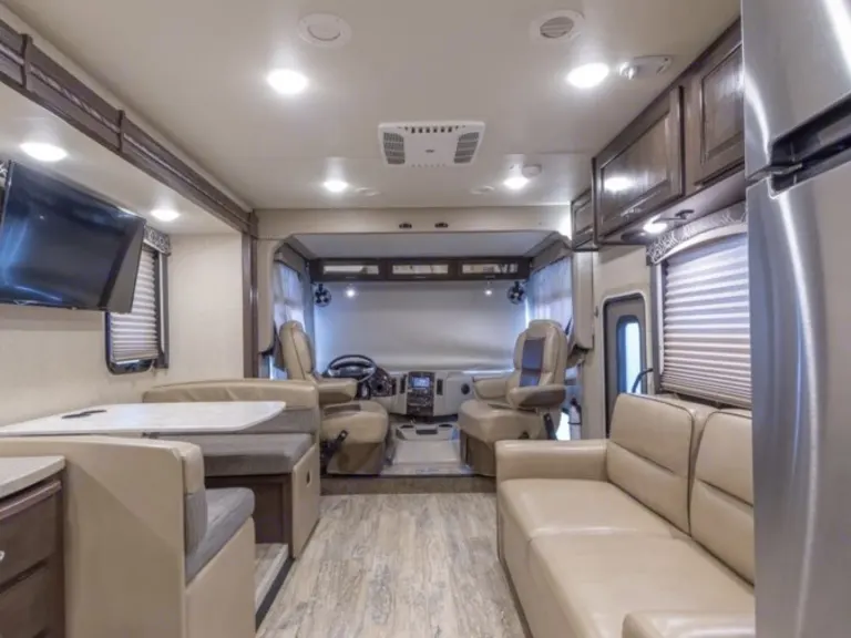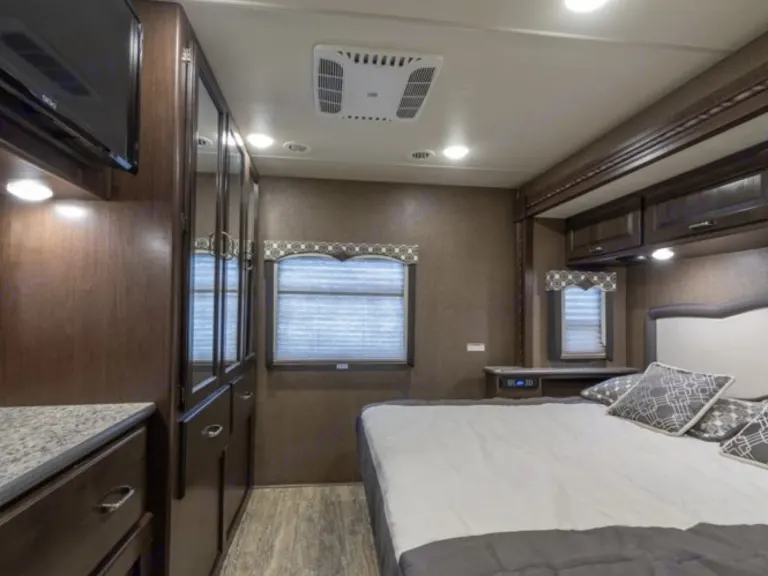 Enjoy an adventure that will make memories! This rig has all the comforts of home anywhere you go! A nice separate master bed with a bath & shower set up. There is also a huge living area with a nice kitchen setup and it slides out with convertible beds from both the kitchen table and the couch, not to mention the powered lift full size bed over the driver's cockpit with amazing head room. 2 TV's inside and 1 outside. Outside also includes powered awning with refrigerator and sink. Lots of storage room inside and outside. This is the perfect traveling rig to experience many adventures & make tons of great memories!Qué incluyeIncludes fresh linens, dishes, kitchen utensils, cookware. Coffee pot, grilling and campfire utensils.Delivery and pickup within a 100 mile radius available on request - $100.00RecomendacionesEnjoy trips to most campgrounds, National Parks, visiting long-distance family, or just to take for a few days at the lake!