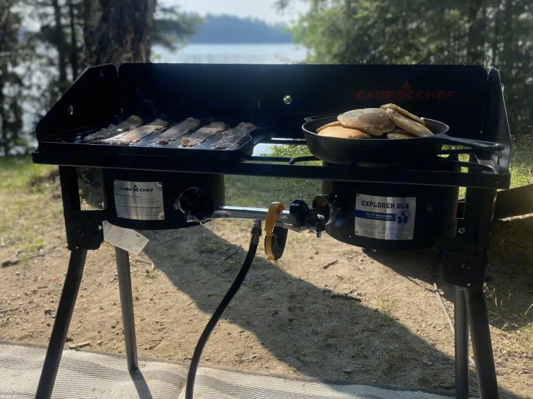 We’ve stocked the trailer with everything you need to make camping easy and enjoyable — from cookware and dishes to eco-friendly supplies and cleaning essentials.Outdoor Comfort2 adult camping chairs2 children’s camping chairsTelescoping roasting forks (2)Outdoor matFly swatterClothespinsCooking GearCamp Chef 2-burner stove with griddleWoods cast iron cookware set (Dutch oven with lid, pot with lid, 8” & 10” skillets, pot lifter)Cast iron scraperCamp stove toasterEnamel potCoconut oil (for seasoning)Aluminum foil and clingwrapOven mittsCoffee & Beverage SuppliesCoffee maker (for indoors)Enamel percolator (for outdoors)Specialty coffee (one bag included)Wine opener and shot glassAcrylic drinking glasses (4)Kitchen & TablewareEnamel plates, bowls, mugs (6 of each)Utensils: forks, spoons, butter knives (8 each), steak knives (4)Paring, utility, and bread knivesTongs, whisk, peelerMeasuring cups (stainless set plus large cup), measuring spoonsMixing bowls (set of 3)Small and large cutting boardsSalad spinner, colander, mini and large gratersCan opener, bottle opener, scissorsDish rackCleaning & SuppliesBroom and dustpanToilet brushCollapsible laundry hamperGarbage bagsToilet paper and paper towelsThieves cleaner (plant-based)Unscented dish soapHomemade, chemical-free hand soapTruEarth laundry strips (2)Qué incluyeIncludes a Camp Chef 2-burner stove with griddle, cast iron cookware set, coffee maker & percolator, dishes, utensils, camping chairs, outdoor mat, eco-friendly cleaning supplies, and essentials like paper towels, garbage bags, and laundry strips. Everything you need for a comfortable and convenient camping experience.RecomendacionesWe live just north west of Huntsville, ON. which has so many stunning Ontario Provincial Parks close by to explore.