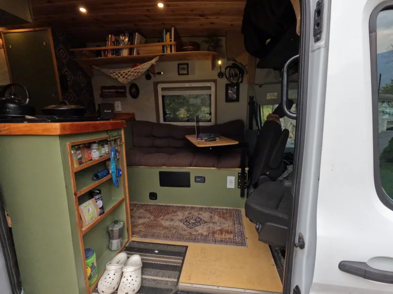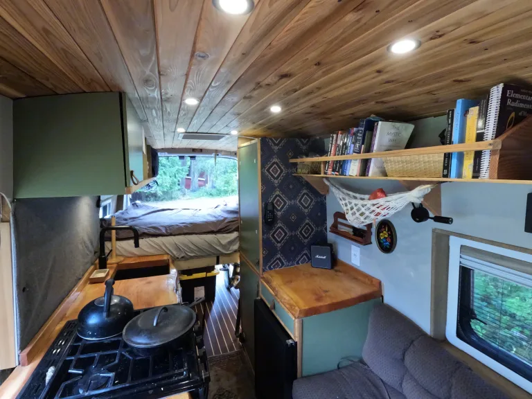This custom-built 2017 Ford Transit was designed for full-time living, blending the warmth of a rustic cabin with the functionality of a modern mobile office. Whether you’re chasing mountain sunsets, working from a remote trailhead, or exploring coastal backroads, Atlas is ready.Powered by a 400W solar array, 280Ah lithium battery, and shore/alternator charging, Atlas keeps you self-sufficient for days. Optional Starlink satellite internet delivers high-speed connectivity anywhere — perfect for remote work or staying in touch on the road.Inside, cedar paneling, generous windows, and thoughtful lighting create a bright, welcoming space. The pivoting front seat pairs with a height-adjustable table for an ergonomic desk setup, while the kitchen offers a real cooking experience: full-size sink, 100L fridge, oven, stove, and plenty of storage.Climate comfort is covered year-round with a diesel heater, two fans, screened windows, and blackout curtains. Water is handled by a 28-gallon fresh tank, 17-gallon grey tank, and a hot outdoor shower for post-adventure clean-ups.With BF Goodrich all-terrain tires, massive gear storage, and details like a hammock chair, Atlas is equally at home in the city or deep in the wilderness. More than just transportation, it’s a reliable basecamp for your next chapter on the road.Qué incluye • Towels (bath & beach)