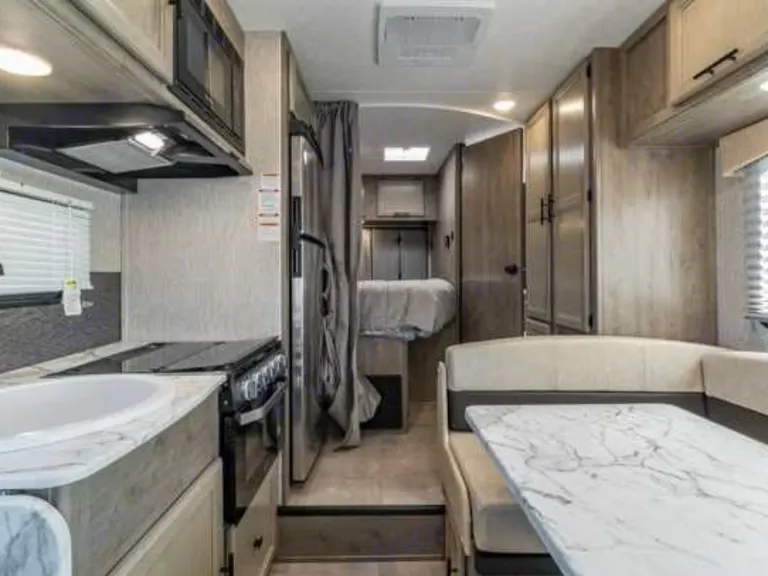 Rent this beautiful rig and hit the road in style with this spacious Class C "Dina" and bring along the whole family. Everyone will have plenty of room to relax and you won't go without with the kitchen and full bathroom in this setup. This RV sleeps 6 comfortably and has all the comforts of home!Qué incluyeLinens (pillows, sheets, blankets and quilts for queen, 2 sleeping bags for bunks, 4 towels, washcloths)
