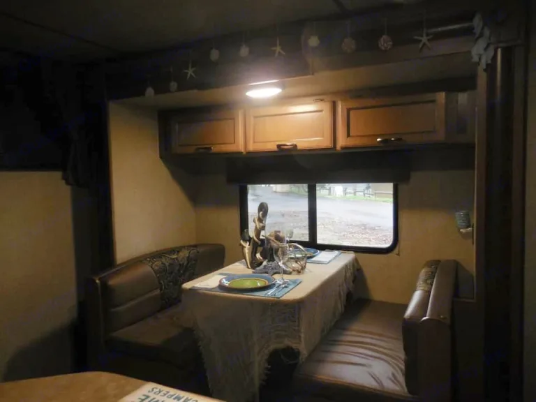 This cozy, yet spacious, 25' Sunset Trail is the perfect way to experience the outdoors. If you are an ocean lover and enjoy unique travel experiences, you will fall in love with this 'beach cottage' themed rig. It sleeps 5 people comfortably.