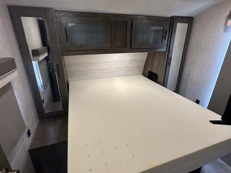 • Dedicated bunk room with two L-shaped upper bunks and a convertible couch bed underneath that also has a 2 in memory foam topper