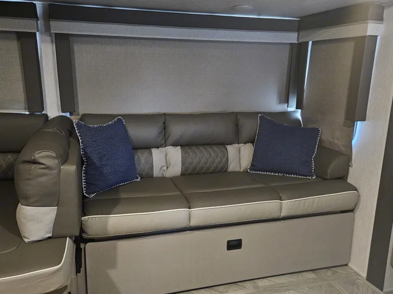 The rear of the trailer includes double over double bunks, perfect for kids or guests.Versa Lounge: