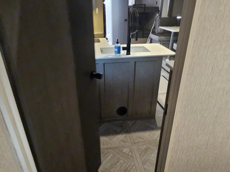 The master bedroom features a Versa-Tilt King bed, offering comfortable sleeping arrangements and storage solutions.Bathroom: