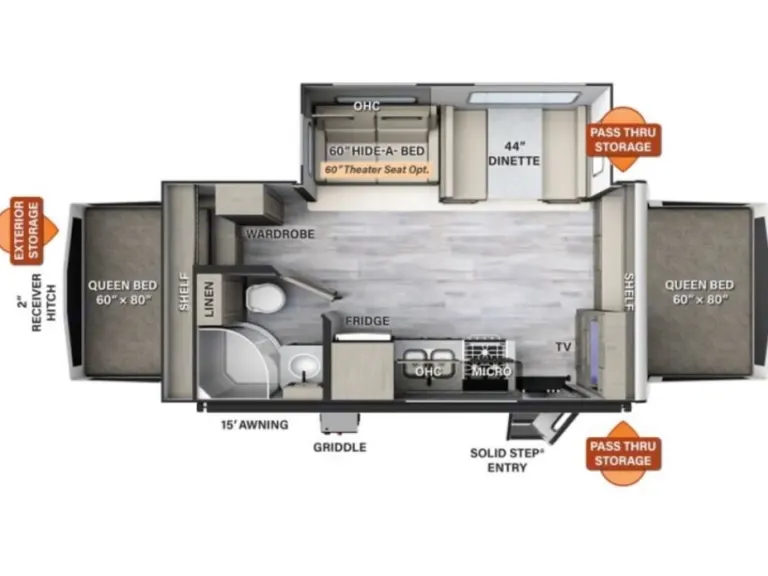 A great sized camper that is family friendly for long or short trips. Very easy set up. Lots of room with beds being out of the way. Half ton towable.Qué incluye• Tow hitch included