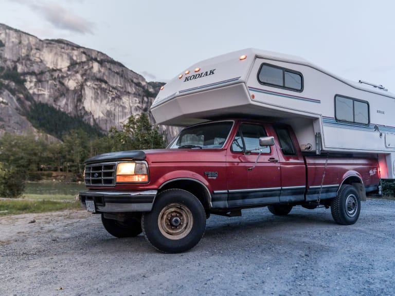 Website : www DOT retroridescanada DOT comAvailable in Vancouver (ideally for long bookings only, more than a weekend, or with an additional fee for short rentals) or in Squamish !1996 Ford F-250 XLT Camper TruckThis truck runs on diesel, which is a major plus in terms of gas mileage. If you’re lucky you could get down to 15L/100km on the highway (gasoline go up to 25L).- 6 seats